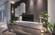 With a sleek design and high gloss finish, this entertainment unit will add a modern feel to any living room. Its modular nature ensures that it can be arranged in a variety of different styles. All the furniture pieces have 18mm MDF fronts and carcasses made from 15mm laminated chipboard. There are no handles, instead a push-to-open mechanism has been incorporated in every cabinet.