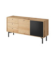 Unwind with this beautiful piece of furniture. With two hinged doors and three drawers, our Flow sideboard is adorned with a pearly black matt finish which contrasts beautifully with its oak detailing. Storage capacity is generous in this sideboard with both the doors concealing a pair of compartments each
